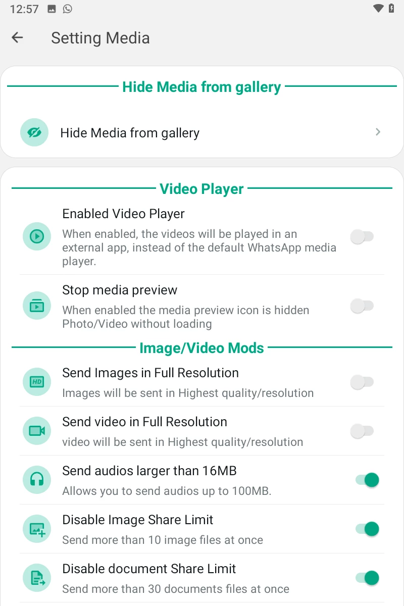 Dans l'application officielle, il faut compresser les fichiers volumineux avant de les partager, ce qui entraîne des fichiers de mauvaise qualité. WhatsApp Plus ne présente aucune restriction de ce type ; vous pouvez partager des fichiers sans limite de taille et avec une qualité garantie.